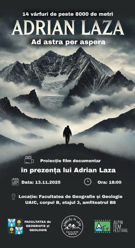 „Nu cucerim munții. Ne cucerim pe noi înșine.” #AlpinFilmFestival, ediția a 10-a, prezintă: Adrian Laza – 14 vârfuri de peste 8000 de metri