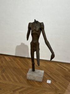 Expoziția de la Cluj vine ca o continuare firească a direcției. Unele sculpturi păstrau doar fragmente recognoscibile: părți ale corpului, o coloană, o formă aproape schematică. Altele mergeau și mai departe, până când corpul devenea aproape doar un pretext pentru volum și echilibru. În acel moment începi să înțelegi mai bine ce a făcut, de fapt, Brâncuși: nu a abandonat corpul, ci l-a redus până când a rămas doar esența lui formală.