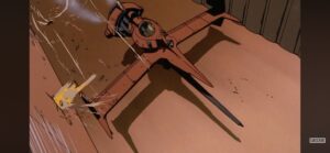 În mod interesant, această scenă dezvăluie cât de mult se bazează Cowboy Bebop pe spațiul dintre personaje. Ostaticul și agresorul se află la câțiva pași unul de celălalt, dar distanța emoțională dintre ei este imensă. Nu este doar o confruntare fizică — este întâlnirea a două forme diferite de singurătate.