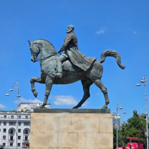 Piața Universității din București are patru statui care au văzut mai multă istorie decât orice om în viață. Statuia ecvestră a lui Mihai Viteazul, turnată în Franța de Albert-Ernest Carrier-Belleuse și adusă la București în 1873, a asistat la gărzi legionare, la comuniști cu portrete, la pionieri, la revoluționarii din ’89 murind. A fost mutată în Parcul Izvor în 2010 pentru o parcare și readusă în 2012. Statuile de pe frontispiciul Universității, Dreptul, Filosofia, Știința și Arta, sunt opera lui Emil Wilhelm Becker, sculptorul Casei Regale, realizate după chipul fiicei sale. Comuniștii i-au șters semnătura de pe lucrări ca pedeapsă pentru că a sculptat pentru rege.