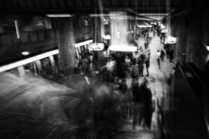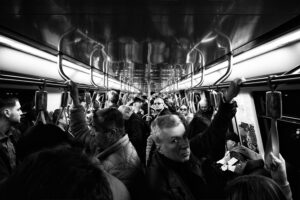 Oameni de toate vârstele, diferite chipuri și vieți se contopesc acolo, în subteran, într-o continuă mișcare. Ei nu sunt uniți prin conversație, ci prin absență, orientați spre eul lor interior, suspendați în timp și spațiu. Metroul devine o zonă de tranzit atât pentru corp, cât și pentru minte. În graba orelor de vârf, am observat cum acest sistem, construit pentru mișcare, oprește timpul într-un alt fel de imobilitate: emoțională, relațională, și umană.