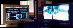 Anii ’90 au adus o schimbare de paradigmă, în special odată cu implicarea lui Călin Man, care a devenit una dintre figurile centrale ale tranziției către digital. Odată cu apariția primelor computere în atelierul din Arad, procesul de creație s-a mutat din zona materială a peliculei în spațiul software-ului. Imaginea putea fi acum manipulată, fragmentată și reorganizată într-un mod mult mai flexibil, iar interactivitatea a devenit o componentă esențială. În această etapă apar proiecte multimedia complexe, CD-ROM-uri interactive și lucrări de tip hypermedia, care extind ideea de imagine dincolo de ecranul tradițional. Proiectul „Vorspann” din 1995 sintetizează această tranziție, funcționând ca o punte între perioada analogică și cea digitală, prin reutilizarea arhivei existente într-un nou format vizual.