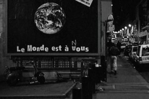 Trecem oceanul și aterizăm în suburbiile Parisului, unde găsim replica franceză a sloganului din Scarface, de data aceasta sub formă de afiș publicitar. Un panou uriaș le vinde tinerilor marginalizați aceeași iluzie a succesului global. Însă, spre deosebire de Tony Montana, personajele lui Mathieu Kassovitz nu mai au naivitatea de a crede în promisiuni poleite. Pentru Hubert, Saïd și Vinz, mesajul „Lumea este a voastră” nu e o invitație la putere, ci o ironie amară, o dovadă vizuală a prăpăstiei dintre centrul strălucitor al Parisului și blocurile îngrămădite în care locuiesc. Savoarea maximă vine din modul în care filmul „corectează” această minciună. Una dintre litere este modificată, transformând mesajul în „Le monde est à nous” (Lumea este a noastră). Această mică intervenție de tip street art schimbă complet miza: nu mai e vorba despre a cuceri lumea, ca în rețeta clasică de la Hollywood, ci despre simpla revendicare a dreptului de a exista. Zidul nu mai este doar un suport pentru reclame, ci devine o pânză pe care tinerii își scriu propria versiune a realității, transformând o insultă publicitară într-un manifest de solidaritate urbană.