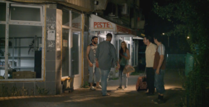 Ajungem în cinematografia contemporană, unde Paul Negoescu livrează, o „românească” de fundal absolut genială prin simplitatea ei. În timp ce o fată este abordată la marginea drumului de un personaj dubios din zona traficului de carne vie (un „pește”, în jargonul străzii), în spatele lor tronează, impasibilă, o reclamă: „Pește proaspăt foarte ieftin”. Este meta-umorul pur, varianta vizuală a unei glume care se scrie singură sub ochii noștri. Aici, decorul depășește nivelul de simplu martor, și devine un complice care face mișto de acțiune în timp real, punând o etichetă de preț pe o situație umană tragicomică. Mesajul funcționează ca o subtitrare a realității de pe ecran. E dovada că, în universul nostru cinematografic, destinul are un simț al umorului foarte negru și, în mod evident, foarte ieftin. Nu ai nevoie de metafore complicate când fundalul îți oferă singura descriere de care ai nevoie pentru personajul din cadru. În Două lozuri, textul are un tupeu fantastic de a spune lucrurilor pe nume exact când e lumea mai dragă… sau, mă rog, mai rea.